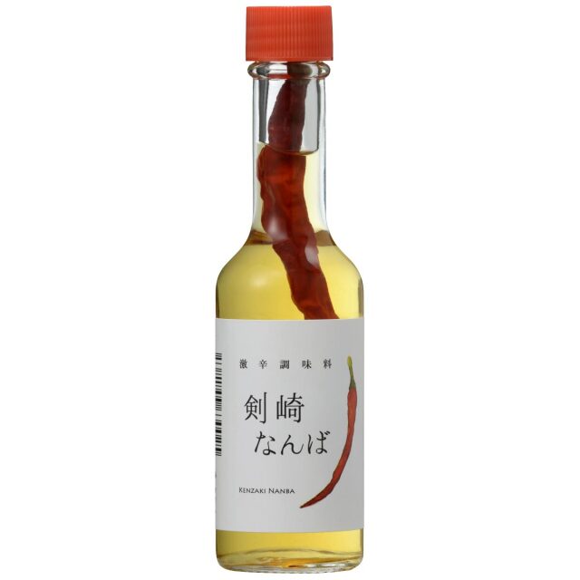 とうがらしの辛み成分と色素が焼酎に溶け出した鮮やかな黄金色をした香味液に「剣崎なんば」の赤い実がそのまま封じ込められており、見た目も個性的です。